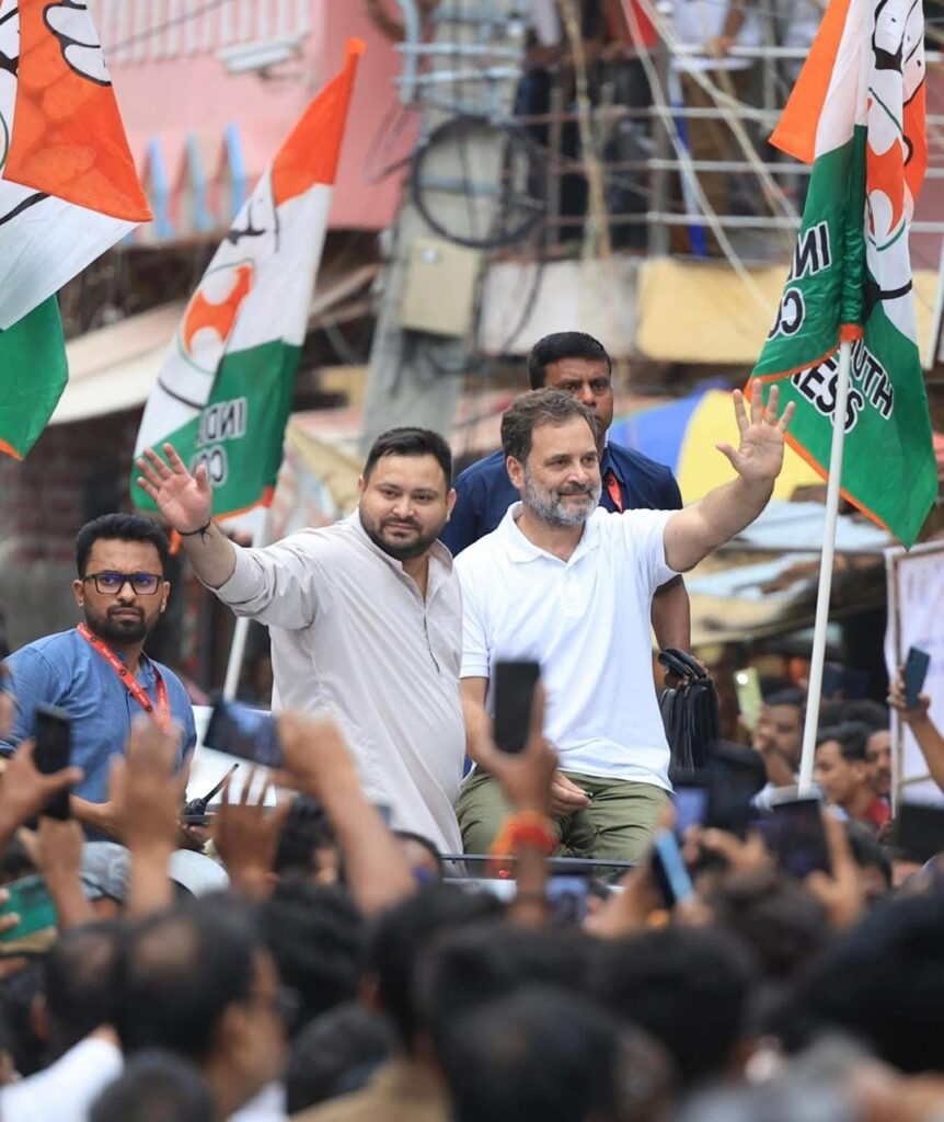 இதற்கு மறுபுறம் மகாகட்பந்தனில் இடம்பெற்றுள்ள காங்கிரஸ் மூத்த தலைவர் ராகுல் காந்தி வாக்குத் திருட்டை முன்வைத்து பிகாரின் பல பகுதிகளில் வாக்குரிமை பேரணியை நடத்தி பிரசாரம் செய்துள்ளார்.
